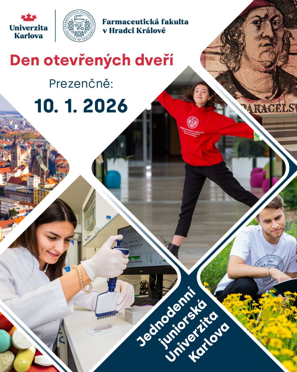 Den otevřených dveří a Jednodenní juniorská Univerzita Karlova, kde studenti si mohou vyzkoušet stát se na jeden den naším studentem a získat 5 cenných bodů k přijímacím zkouškám na naši fakultu?
