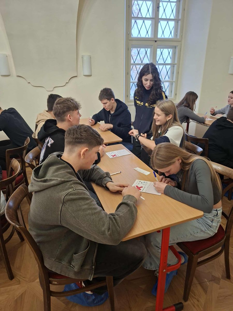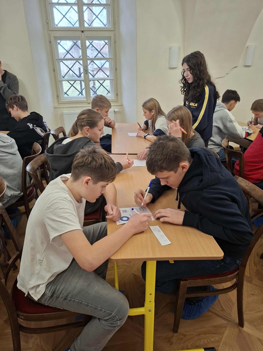 Dne 20. 11. 2025 jsme se plni očekávání vydali do Mikulova, kde se konalo oblastní kolo v piškvorkách družstev. Naši školu reprezentovalo družstvo složené ze žáků kvarty V. Křivková, V. Mohylová, V. Benýšková a A. Forejtník a dařilo se mu více než dobře. Nejdříve proletěli skupinou bez jediné porážky a postoupili do play-off z prvního místa. Podobně se jim dařilo i v osmifinále , čtvrtfinále a semifinále, čímž si zajistili postup do krajského kola v Brně. Ve finále utrpěli jedinou porážku o jeden bod proti družstvu Gymnázia Mikulov, takže se umístili na krásném 2. místě ze 17 zúčastněných družstev.