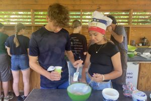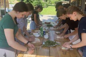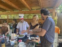 Ve čtvrtek 19. 6. zavítalo 22 žáků tercie, kvarty, sexty a 2.A do Otevřené zahrady v Brně, kde se opět zúčastnili oblíbeného programu Vaření s Francouzem ve venkovní kuchyni. Populární kuchař François Bouillet žáky zasvětil do přípravy specialit, jako je ratatouille, salade composée nebo palačinek s třešňovým coulis. K tomu si upekli ve venkovní peci fougasse a bagetky. Žáci si kromě procvičování francouzštiny vyzkoušeli také své kuchařské dovednosti, umění pracovat v týmu, ověřili si své znalosti bylinek a zapojili se do přípravy společné tabule. V přátelském prostředí a za krásného počasí našli novou inspiraci pro studium francouzštiny.