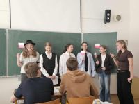 Žáci dostali úkol sehrát vyhlašování první republiky – všechny tzv. Muže 28. října ztvárnila děvčata, která si vyrobila i dobové vlaječky a znak rakousko-uherské monarchie. Díky těmto scénkám se látka lépe vryje žákům do paměti.