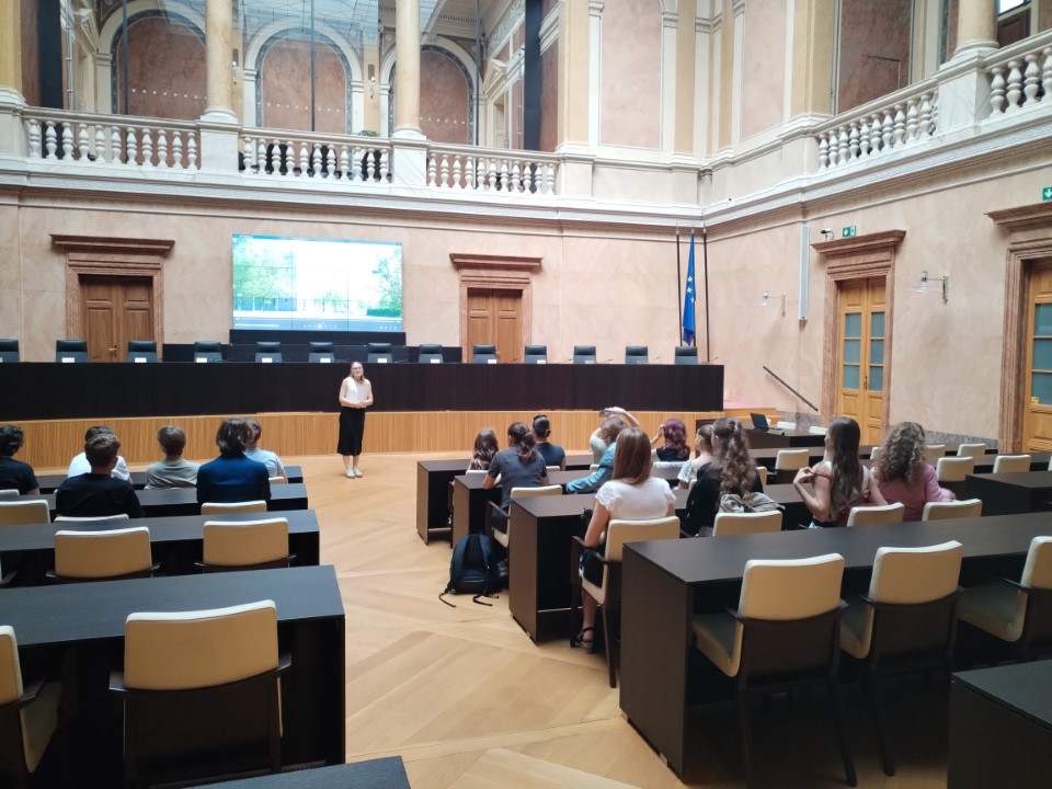 Dne 5. 6. se kvinta zúčastnila společensko-geografické exkurze do Brna. Hlavním bodem programu byla návštěva Ústavního soudu. Nejen, že si studenti prohlédli krásně zrekonstruovanou budovu soudu, ale dozvěděli se i zajímavé informace ohledně chodu naší nejdůležitější soudní instituce. Další program pokračoval na Hvězdárně a planetáriu, kde se zúčastnili programu Cesta za miliardou hvězd. Poutavě vyprávěná produkce všem poskytla hlubší vhled do vesmíru.
