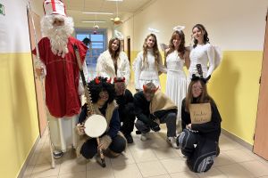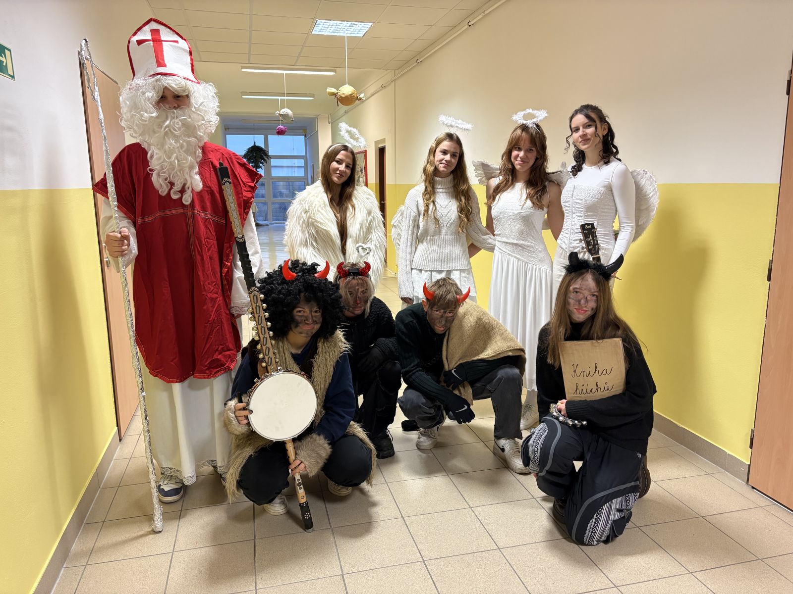 Ve dnech 4. a 5. prosince 2025 se naše gymnázium ponořilo do předvánoční atmosféry! Studenti tříd 3.A a septimy oblékli kostýmy Mikulášů, andělů a čertů, aby potěšili své okolí. Mikulášská výprava nejprve navštívila všechny třídy našeho gymnázia a druhý den se vydala potěšit ty nejmenší. Navštívila MŠ U Rybiček, MŠ Pastelka a ZŠ a praktickou školu Hustopeče.