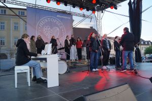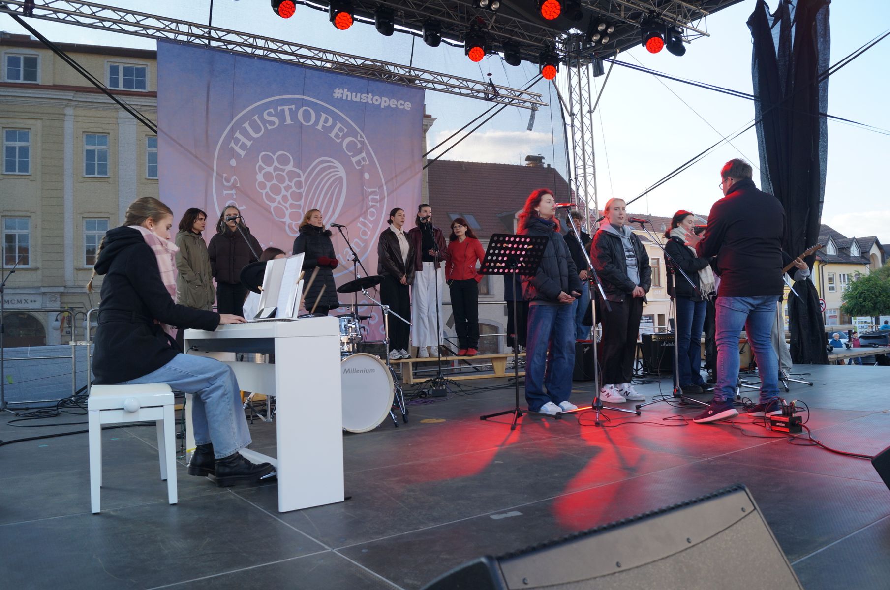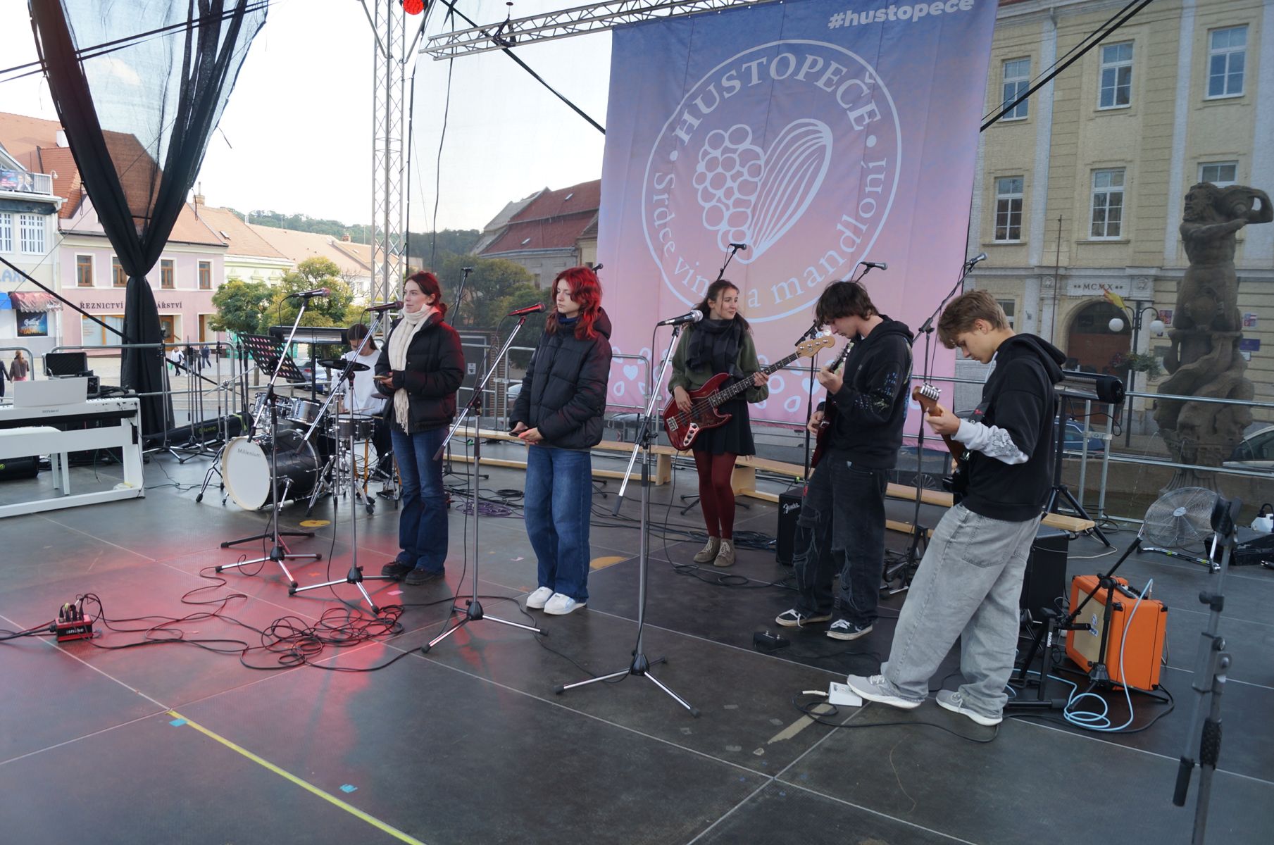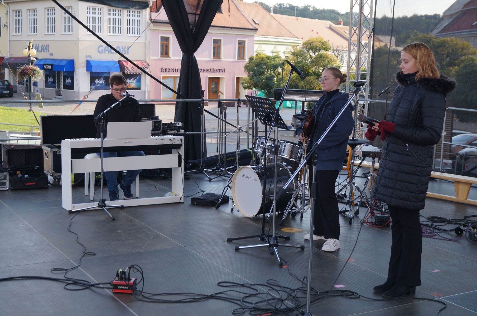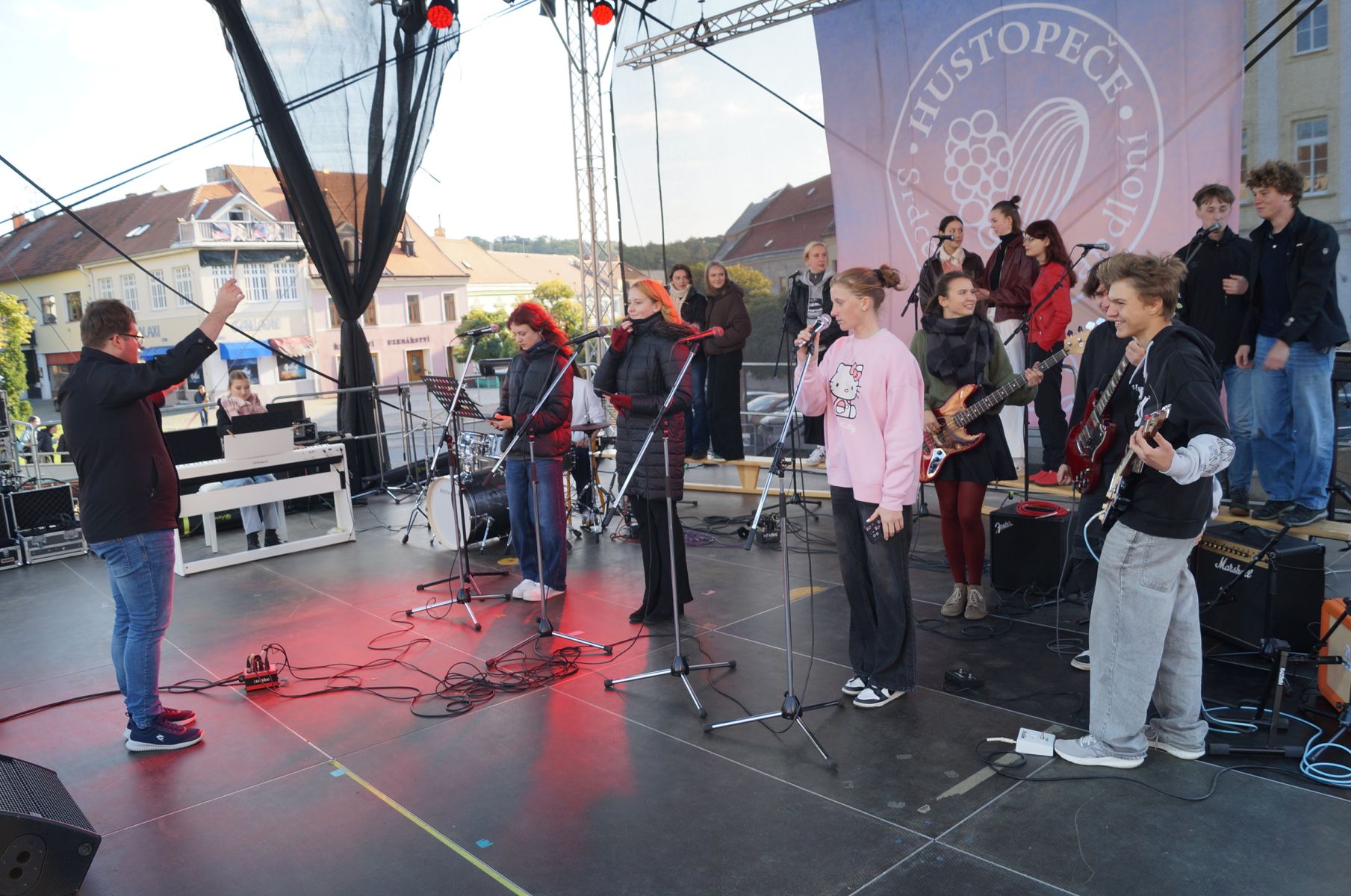 Ve dnech 2.– 4. října se konaly tradiční Burčákové slavnosti. Při jejich zahájení nechyběli ani studenti našeho gymnázia, kteří se postarali o úvodní kulturní vstup. Po studentské hymně vystoupil s akordeonem Oliver List ze 3.A, následovala autorská tvorba našeho absolventa Mirka Brúčka a na závěr zazněly světové hity v podání školní Kapely rocku.