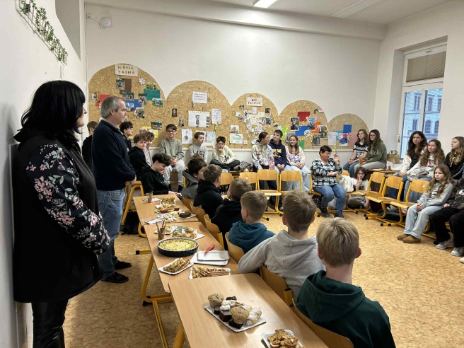 Dne 15. 12. 2025 proběhla zajímavá spolupráce žáků sekundy Gymnázia T. G. Masaryka Hustopeče a žáků ZŠ Lednice. Setkání přineslo možnost vzájemného poznávání, týmové práce a sdílení zkušeností v příjemné a tvořivé atmosféře. Nešlo o jednodenní akci, ale o delší dobu probíhající projektovou spolupráci v několika předmětech, a to v angličtině, dějepise, zeměpise, občanské výchově, dalších jazycích, výtvarné výchově i informačních technologiích. O úspěšnosti akce svědčí určitě i konstatování několika žáků z obou škol: ,,Tak to bylo mega dobrý!“