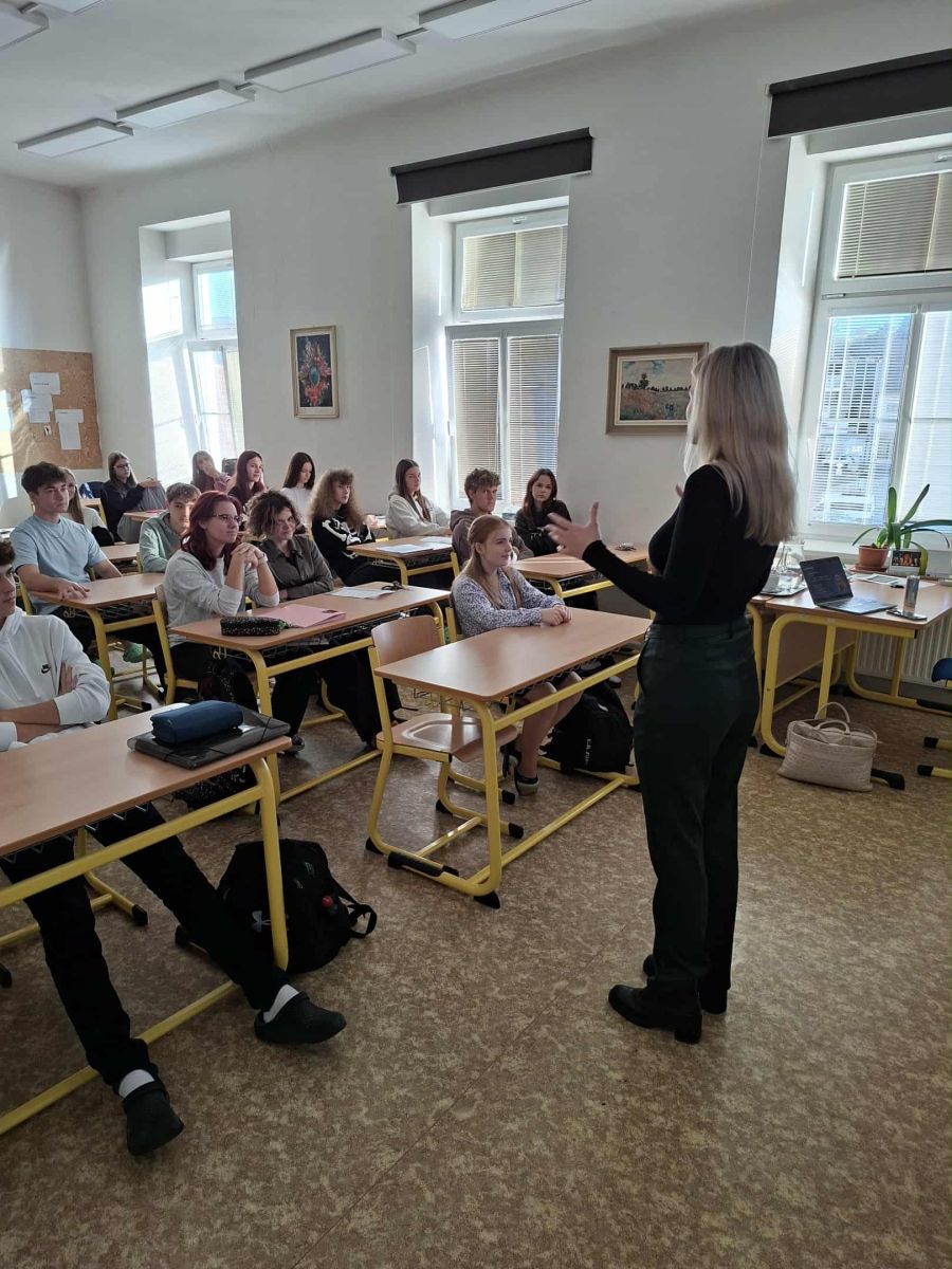 Dne 31. 10. 2025 jsme jako studenti třetích ročníků absolvovali workshop na téma finanční gramotnosti. Během programu, který připravila bývalá studentka našeho gymnázia Bc. Natálie Meredová, jsme se věnovali tématům, která jsou důležitá pro každého z nás – hypotékám, důchodům, spoření, investicím i investičním rizikům. Přednáška byla velmi přínosná a srozumitelná, plná praktických informací, které využijeme i v běžném životě. Děkujeme za zajímavé a poučné setkání, které nám pomohlo lépe pochopit svět financí.