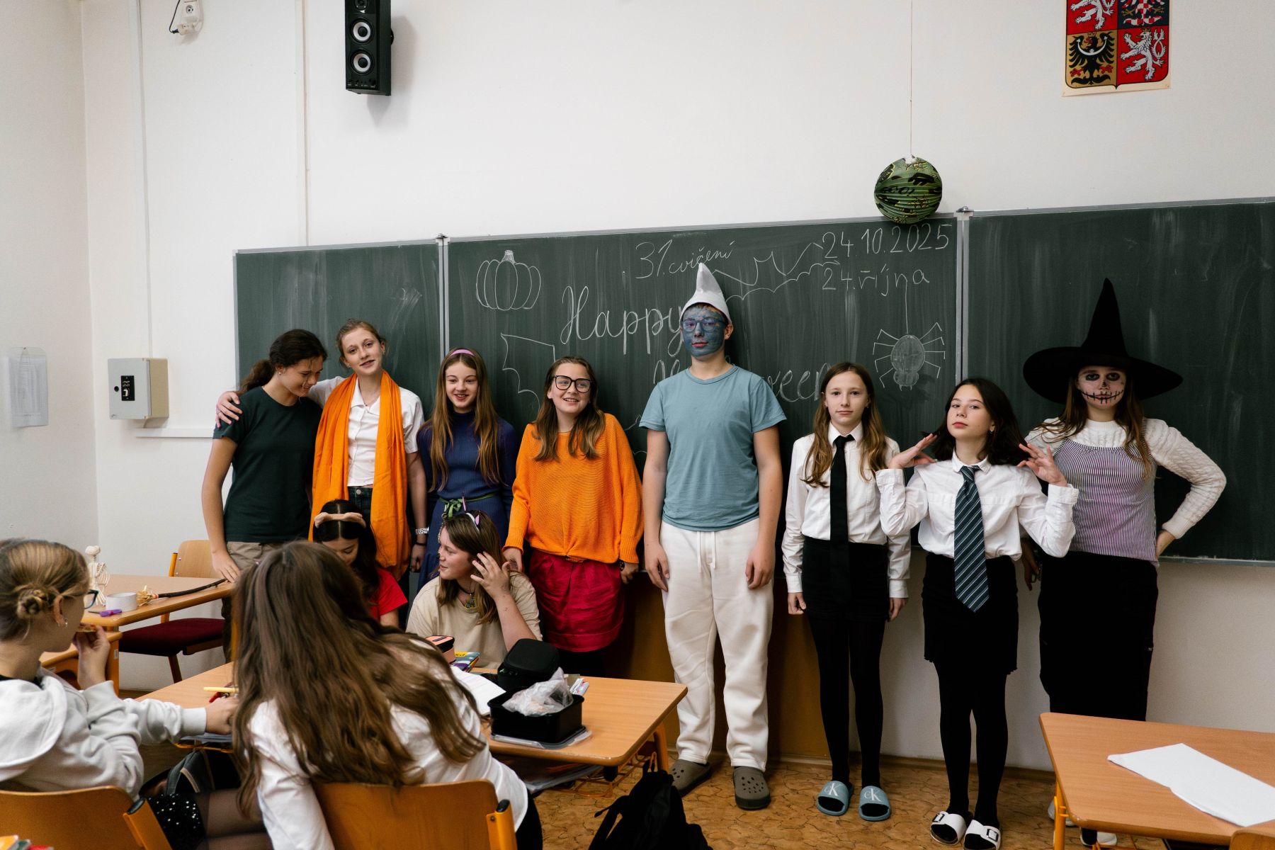 V pátek 24. 10. 2025 se naše gymnázium proměnilo v rej strašidel, čarodějnic a filmových hrdinů! Akce proběhla pod záštitou školního parlamentu. Děkujeme všem studentům za úžasné a kreativní kostýmy a také za nadšené zdobení tříd, které vytvořilo skutečně kouzelnou atmosféru. Za krásné fotky opět patří díky Kubovi Slanému ze septimy.