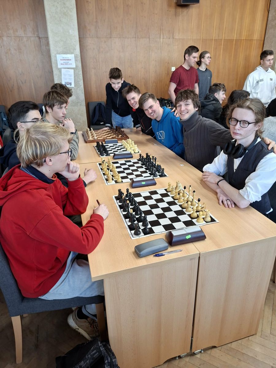 Dne 27. 1. 2026 se v Břeclavi konalo krajské kolo v šachu družstev. Soutěž probíhala tzv. švýcarským systémem, kdy se každé kolo losuje podle toho, kolik bodů družstvo získalo. Naše družstvo se postupně probojovávalo z nasazeného desátého místa, až se před posledním kole dostalo na 6. místo. Tam bohužel narazilo na pozdějšího vítěze turnaje a následná porážka nás odsunula na konečné 9. místo ze čtrnácti družstev. Důležité bylo, že naši studenti zjistili, že se nemusí obávat hrát i s výše nasazenými hráči. ...