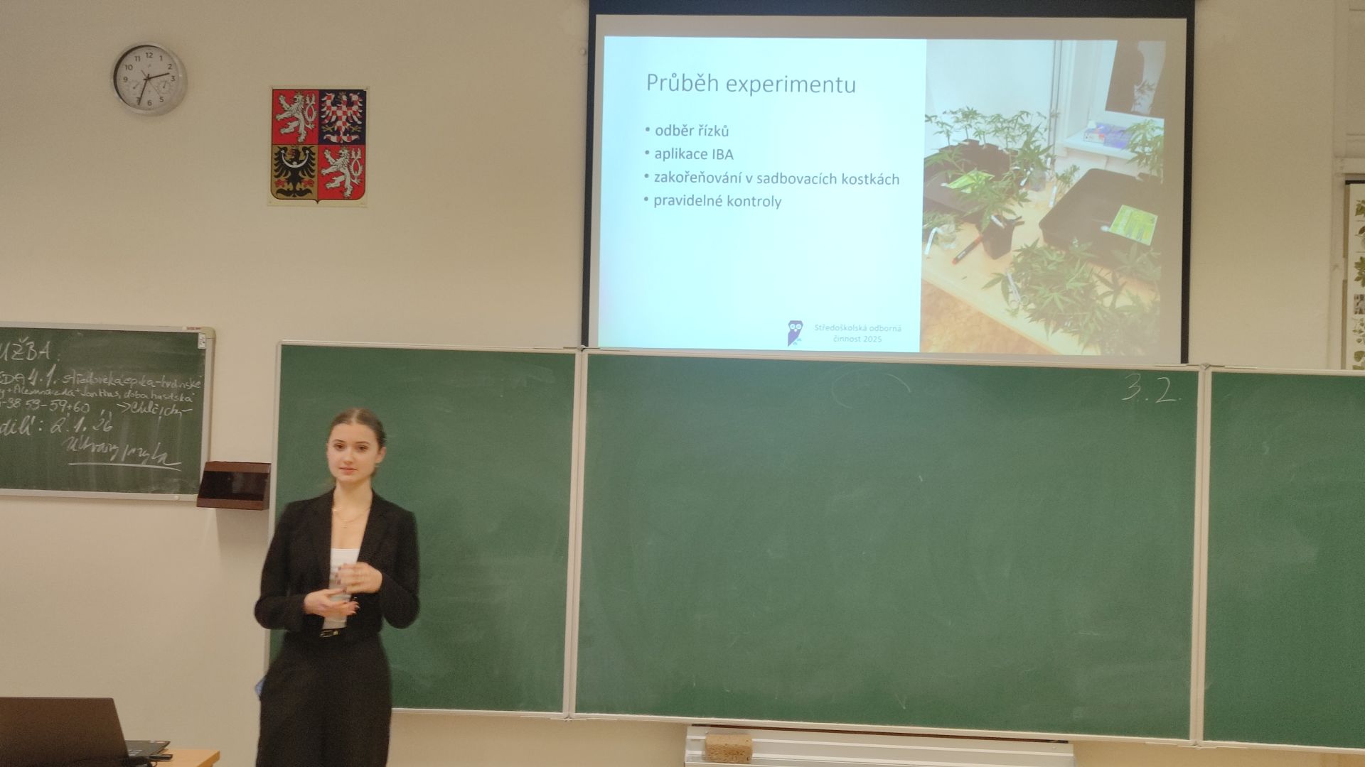 Do školního kola se přihlásily tři studentky. V oboru zdravotnictví prezentovala svoji práci s názvem Parkinsonova nemoc v České republice Patricie Čuprová ze septimy. V oboru biologie soutěžily dvě studentky, a to Jana Klanicová ze sexty s prací Vliv růstových regulátorů a světelného spektra na proces zakořeňování řízkovanců Cannabis sativa L a Hanka Straková ze septimy s prací Morfologická variabilita spermií napříč pěvci.