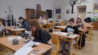 V pátek 9. ledna si dvanáct studentů a studentek z nižšího gymnázia zasoutěžilo v biologické olympiádě. Test byl letos věnovaný tématu Tajemný život lesů, připraveno bylo i poznávání rostlin a živočichů a nakonec laboratorní úkol.